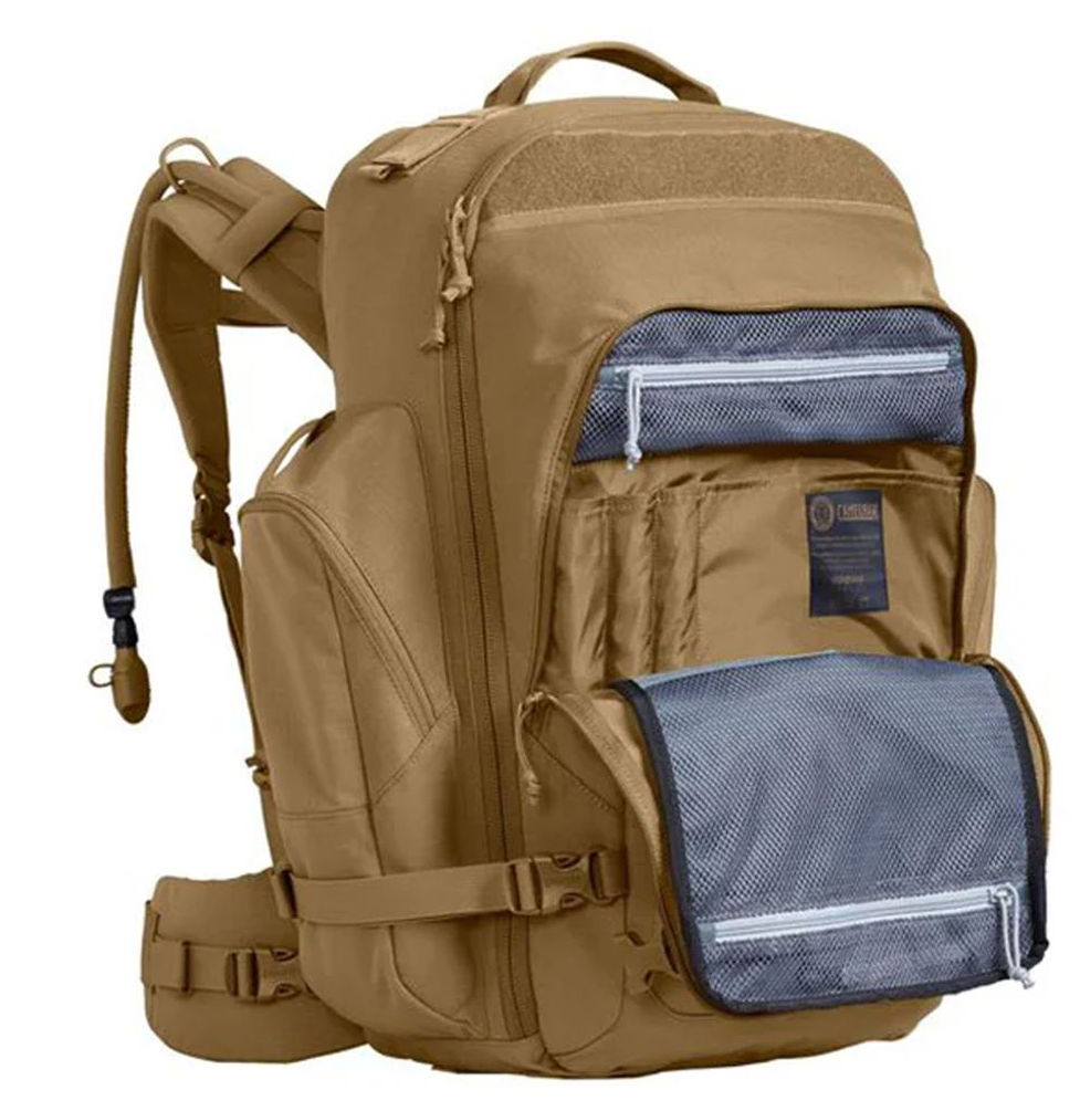 Introducing the CamelBak Skirmish Hydration Pack 3L – Coyote. Engineered for tactical performance and extended field use, this rugged hydration pack combines durability, comfort, and modular storage. Featuring a Mil Spec Antidote® Lumbar Reservoir, it positions water weight low on the hips for enhanced stability. The pack's low-profile composite MOLLE panels allow for secure attachment of pouches and gear, while the full clamshell opening and lower access zipper provide easy access to the main compartment. Designed with a contoured back panel and EVA foam shoulder harness, it ensures comfort during prolonged use. Whether on a mission or an outdoor adventure, the CamelBak Skirmish Hydration Pack delivers reliable hydration and versatile storage.