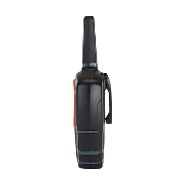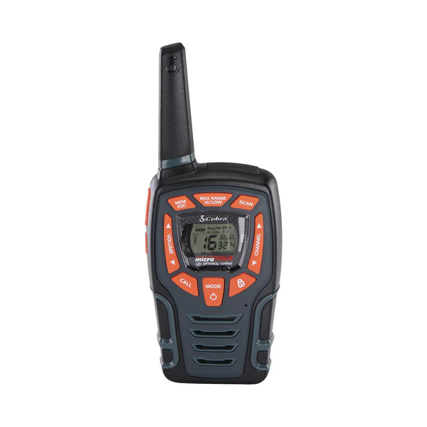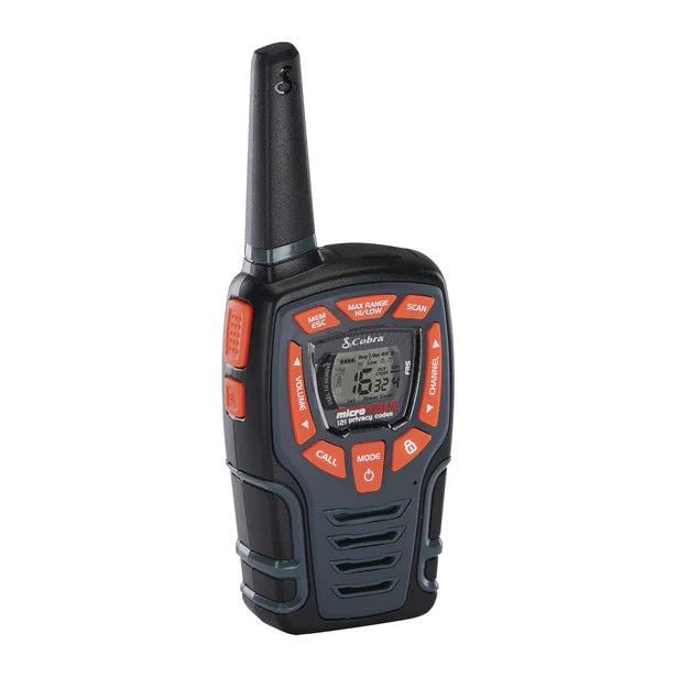 Introducing the Cobra AM855 Two-Way Radio – a rugged and reliable communication device designed for outdoor enthusiasts and professionals alike. With its water-resistant (IPX2) construction and compact design, the AM855 ensures clear communication in various environments. Whether you're hiking, camping, or coordinating events, this walkie-talkie offers a range of up to 10 km, keeping you connected when it matters most. The built-in LED flashlight provides added convenience during low-light conditions, while the VibrAlert® feature notifies you of incoming transmissions through enhanced vibrating feedback. Voice-activated transmission (VOX) allows for hands-free operation, making the AM855 an essential tool for seamless communication on the go.