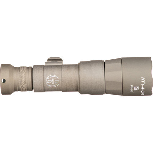 Introducing the SureFire M340DFT-TN-PRO Turbo Mini Scout Light Pro. This compact, high-performance weapon light is engineered for superior target identification at extended ranges. Featuring a Turbo Series reflector, it delivers an impressive 95,000 candela peak beam intensity when powered by the included SF18350 rechargeable battery. The dual-fuel capability allows operation with either the SF18350 or a 123A lithium battery, providing flexibility in the field. Its Low-Profile Mount (LPM) ensures optimal positioning on MIL-STD-1913 or M-LOK rails, making it ideal for various firearm configurations. Constructed from aerospace-grade aluminum with a Mil-Spec hard-anodized finish, this light is built to withstand harsh conditions while maintaining a lightweight profile. With its advanced features and rugged design, the M340DFT-PRO is a reliable choice for tactical professionals seeking top-tier illumination performance.
